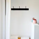 1 badeværelser indeholder en hårtørrer, badehånklæder og håndklæder.